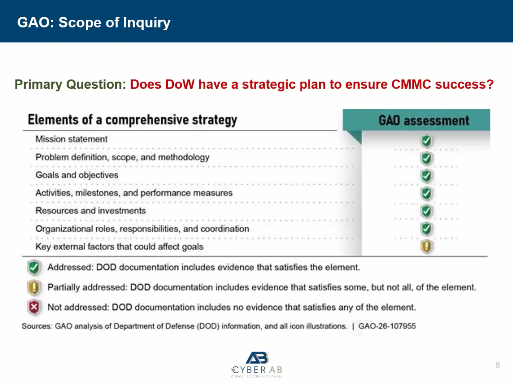 The report does not challenge the intent of CMMC. Instead, it focuses on execution, particularly the Department of Defense’s ability to account for external factors that could impact the program’s success.
