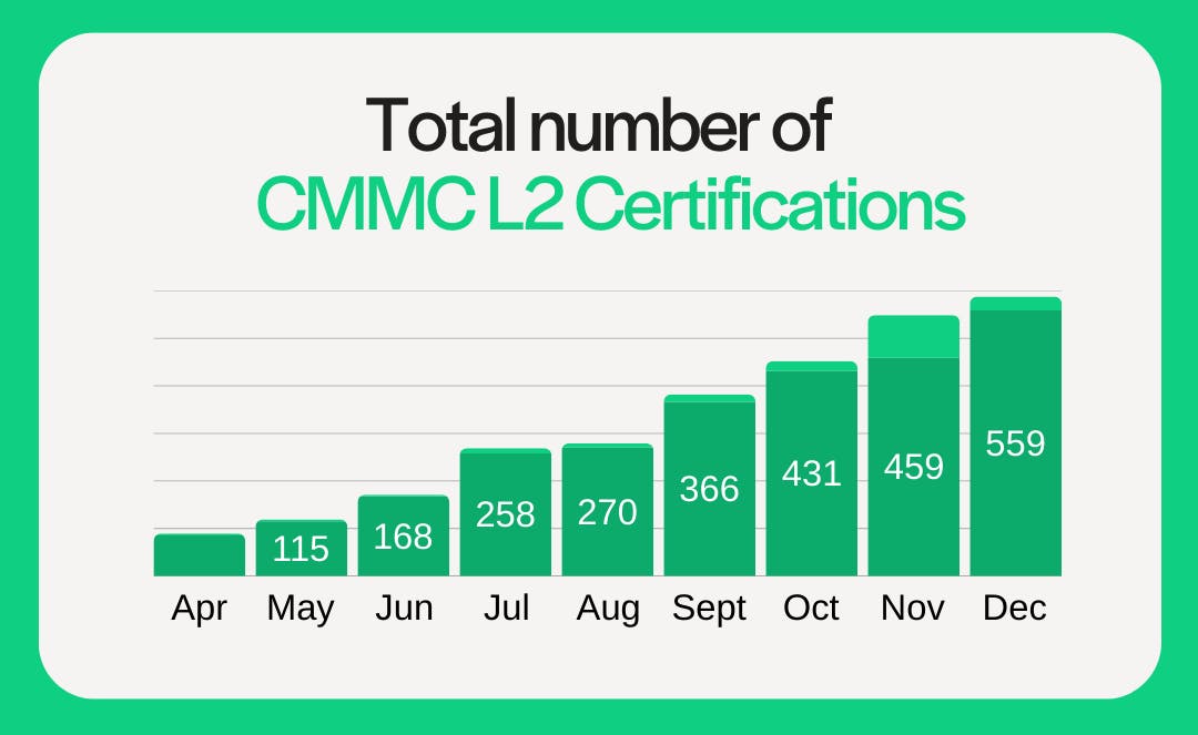 Beyond the CAICO announcement, the Cyber AB also shared the latest certification and ecosystem growth figures, with the trend continuing upward. A total of 559 organizations have now received final Level 2 certification, up 58 from November. Another 29 organizations now hold conditional certifications, and 115 more are currently undergoing assessments.